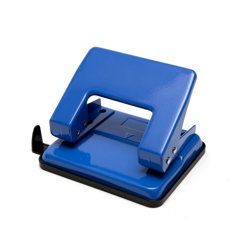 Канцелярский дырокол для бумаги высокого качества на 2 отверстия стандартного расстояния с пробивной силой на 20 листов, оснащен для удобства ограничительной линейкой, контейнером для сбора конфетти, фиксатором и резиновой нескользящей накладкой.