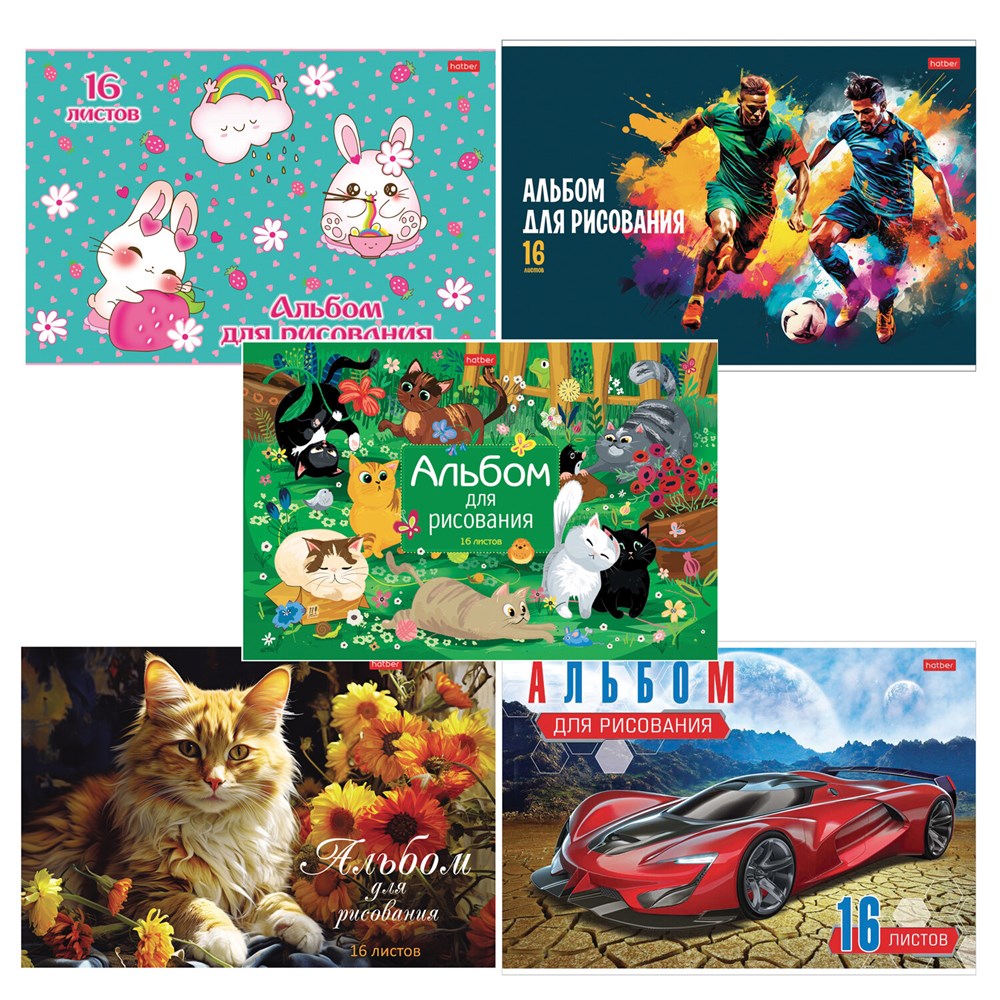 Альбом для рисования А4 16 л., скоба, обложка картон, HATBER, 205х290 мм, Ассорти "Выпуск №3", 085131, 16А4В