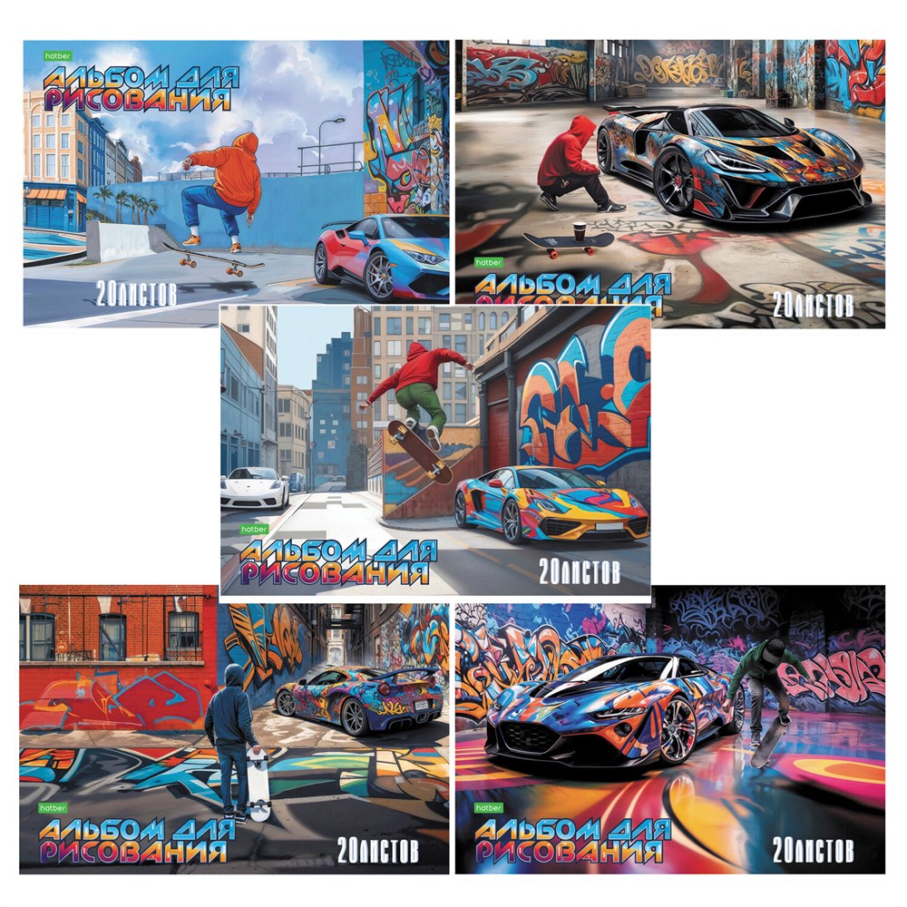 Альбом для рисования А4 20 л., скоба, обложка офсет, HATBER ECO, 205х290 мм, "Фристайл (5 видов)", 088289, 20А4C