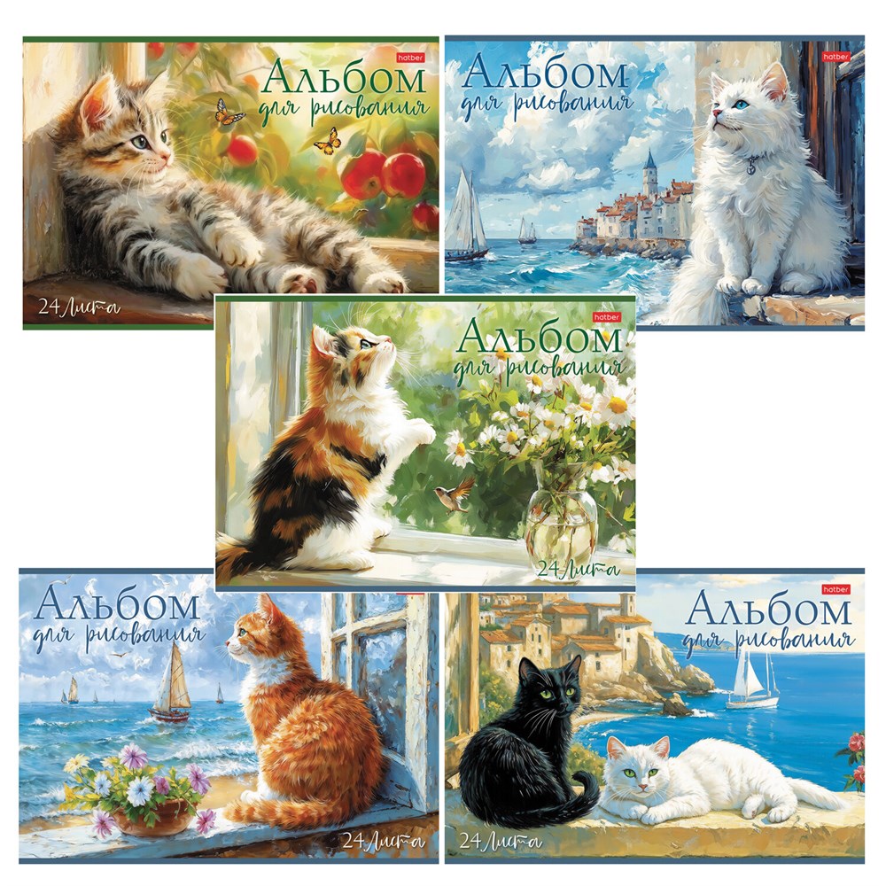 Альбом для рисования А4 24 л., скоба, обложка картон, HATBER, 205х290 мм, "ЗаМУРчательные истории" (5 вид), 091481, 24А4В