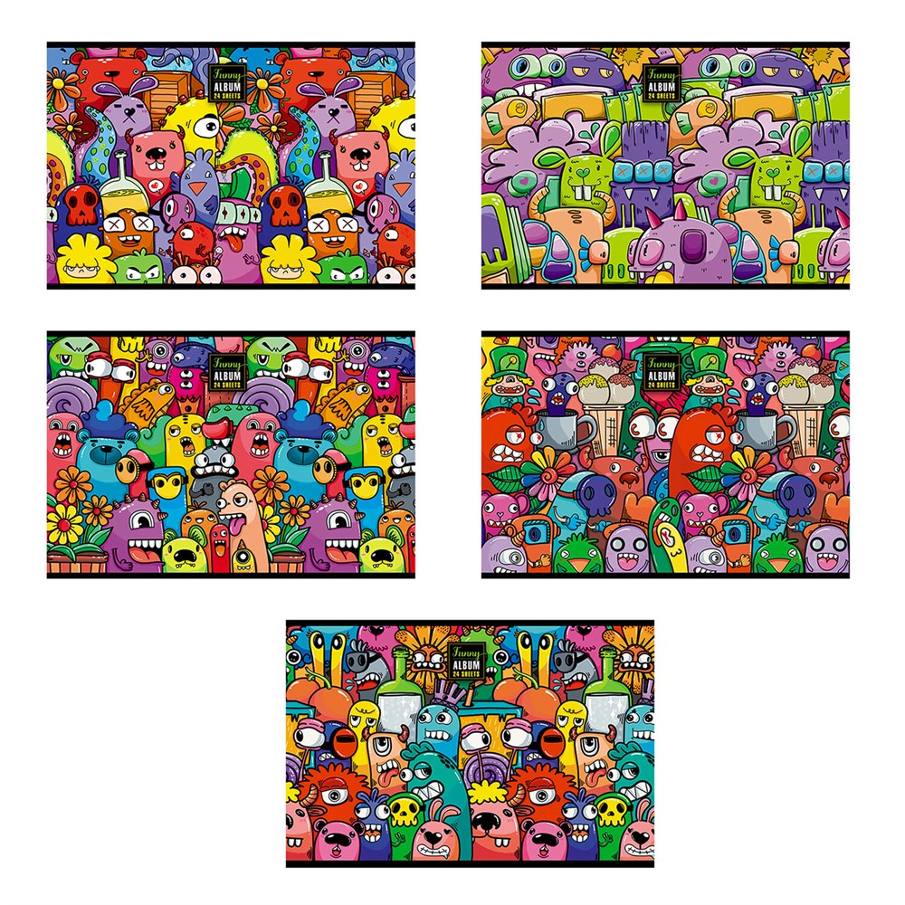 Альбом для рисования А4 24 л., скоба, TWIN-лак, ПЗБМ, 205х295 мм, "Куча Монстров" (микс в спайке), 44055