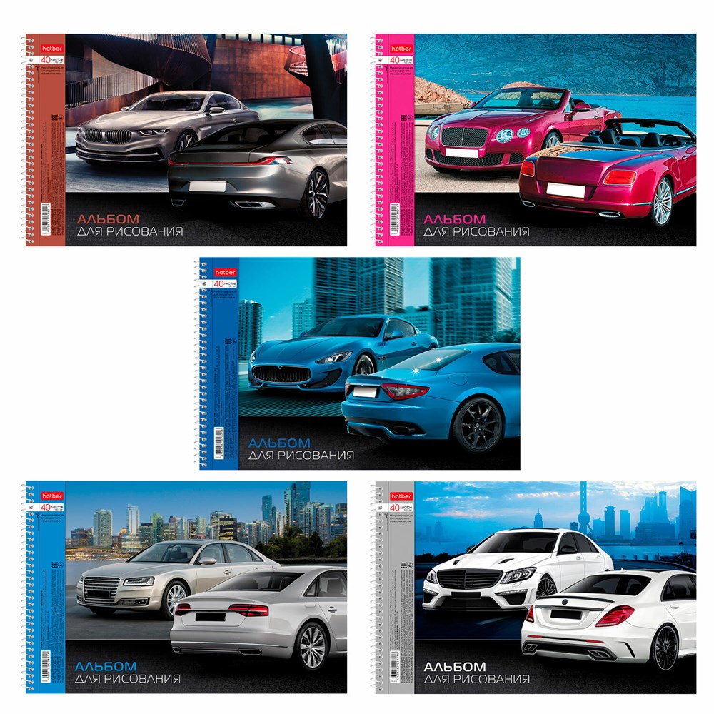 Альбом для рисования, А4, 40 листов, спираль, обложка картон, HATBER, 205х300 мм, "Престижные авто" (5 видов), 004146, 40А4Всп