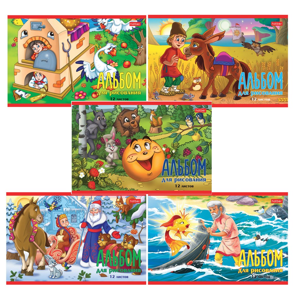 Альбом для рисования МАЛЫЙ ФОРМАТ А5 12 л., скоба, обложка картон, HATBER, 205х140 мм, "Любимые сказки", 085246, 12А5В