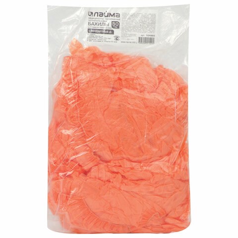 Бахилы КОМПЛЕКТ 100 штук (50 пар), ДЕТСКИЕ, размер 30х12 см, 2 г, ПНД, оранжевые, LAIMA, 104983