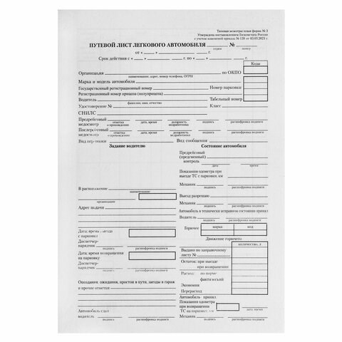 )Бланк «Путевой лист легкового автомобиля» соответствует установленному образцу.