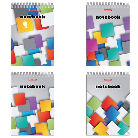 Блокнот А5 146х205 мм, 80 л., гребень, картон, жесткая подложка, клетка, BRAUBERG, "Кубы", 129819