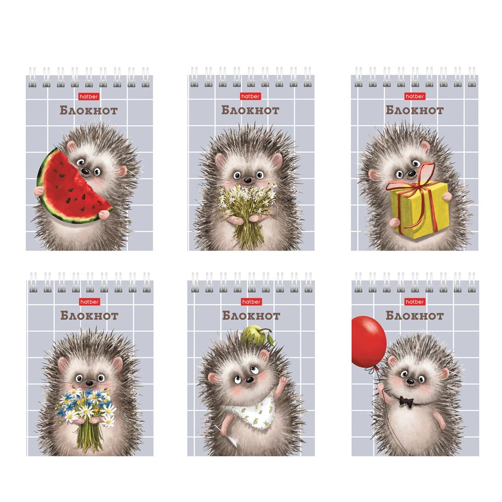 Блокнот МАЛЫЙ ФОРМАТ А7, 40 л., гребень, картон, клетка, HATBER, "Хорошо быть ёжиком", 081183, 40Б7В1гр
