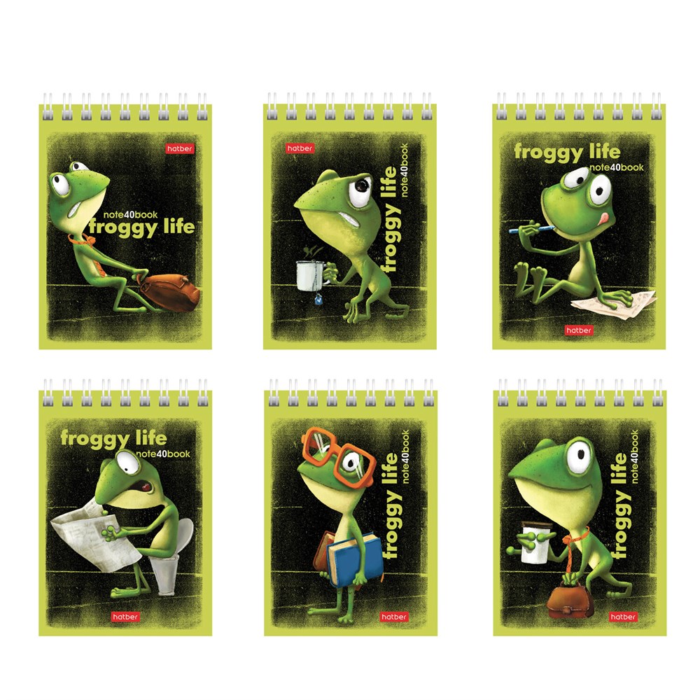 Блокнот МАЛЫЙ ФОРМАТ А7, 40 л., гребень, картон, клетка, HATBER, "Лягух Кир", 081184, 40Б7В1гр