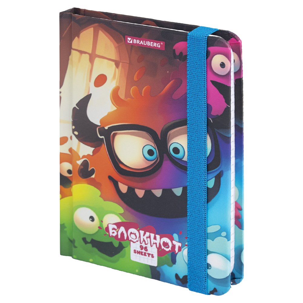 Блокнот с резинкой в клетку 96 л., МАЛЫЙ ФОРМАТ А6, 109х148 мм, BRAUBERG, кросс-серия "МОНСТРИКИ", 117001