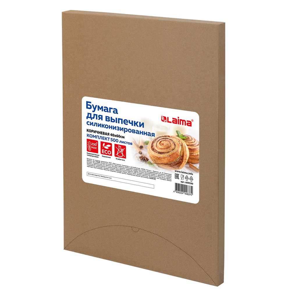 Бумага для выпечки силиконизированная в листах 40 см x 60 см КОМПЛЕКТ 500 штук, цвет коричневый, LAIMA, CH, 609590