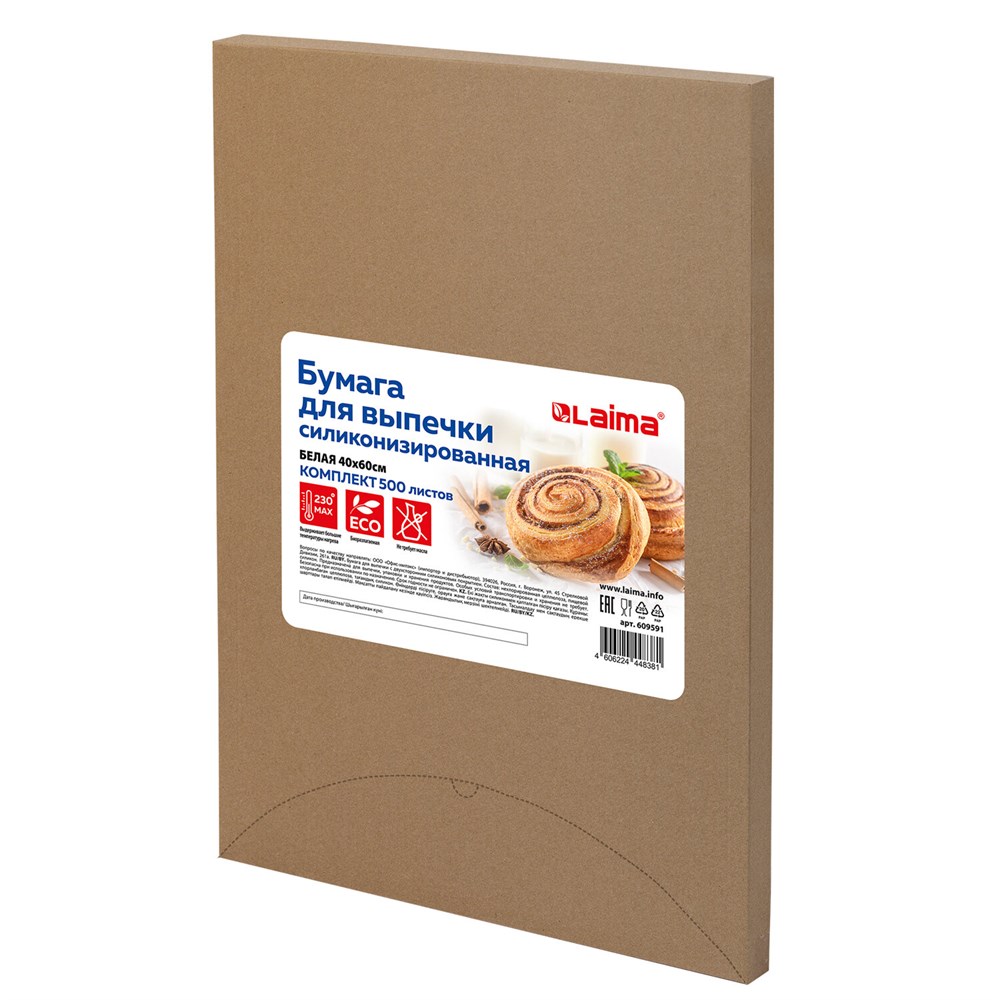 Бумага для выпечки силиконизированная в листах 40х60 см КОМПЛЕКТ 500 штук, цвет белый, LAIMA, CH, 609591