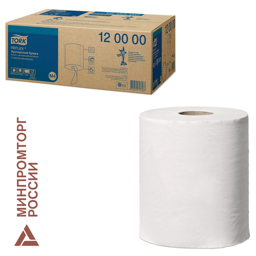 Бумага протирочная с центральной вытяжкой 270 метров, TORK Reflex (M4) 1-слойная, КОМПЛЕКТ 6 рулонов, 120000
