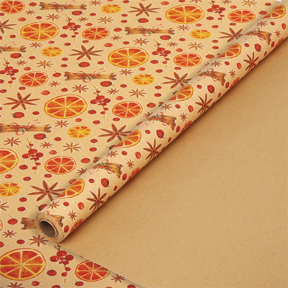 Бумага упаковочная крафт BIG SIZE новогодняя "Апельсин & Корица", 0,7х10 м, ЗОЛОТАЯ СКАЗКА, 592192