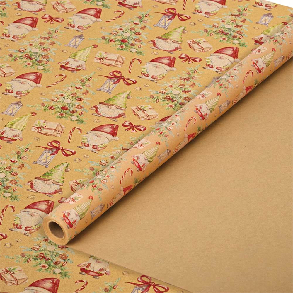Бумага упаковочная крафт BIG SIZE новогодняя "XMAS Gnomes", 0,7х10 м, ЗОЛОТАЯ СКАЗКА, 592193