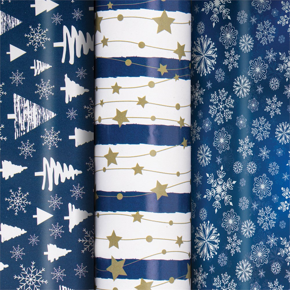 Бумага упаковочная новогодняя НАБОР 3 шт., "Blue Collection", 70х100 см, 3 дизайна, ЗОЛОТАЯ СКАЗКА, 592058