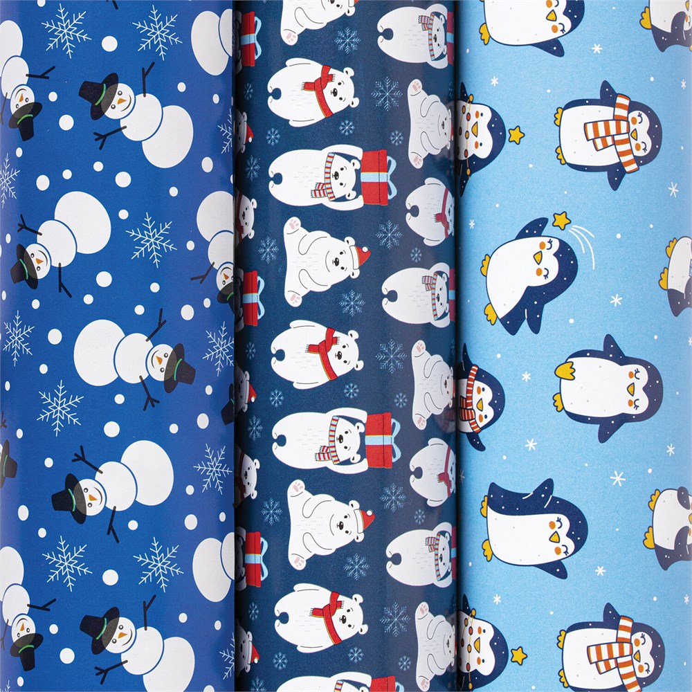 Бумага упаковочная новогодняя НАБОР 3 шт., "Snow Fun", 70х100 см, 3 дизайна, ЗОЛОТАЯ СКАЗКА, 592060