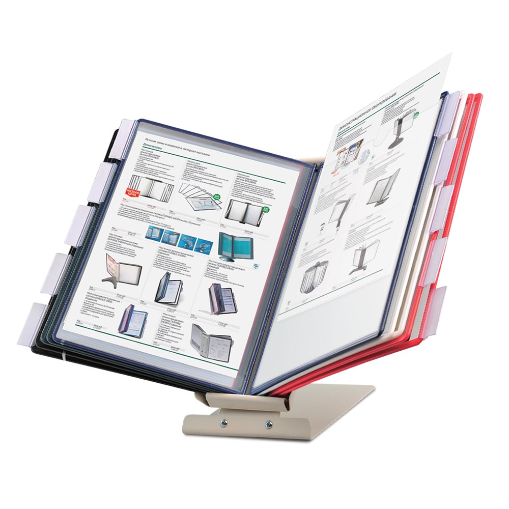 Настольная демонстрационная система BRAUBERG SOLID позволяет удобно и быстро разместить информацию о компании, о предлагаемых товара, услугах и ценах, инструкции для персонала и др.10 двухсторонних цветных панелей позволяют разместить одновременно до 20 листов формата А4. Прочные и гибкие литые рамки панелей изготовлены из полипропилена, пригодного для повторной переработки и дальнейшего использования. Демопанели оснащены съемными ярлычками-табуляторами для маркировки и удобного поиска нужной информации. Карман демопанели из прочного прозрачного материала с антибликовым покрытием надежно защитит документы от внешних воздействий. Устойчивое металлическое основание с антискользящей поверхностью и крепление панелей в вертикальном и горизонтальном положениях гарантируют удобство пользователю и быстрый доступ к документу. Возможно как настольное, так и настенное размещение. Стильный серый цвет металлического корпуса подойдёт для большинства современных интерьеров.