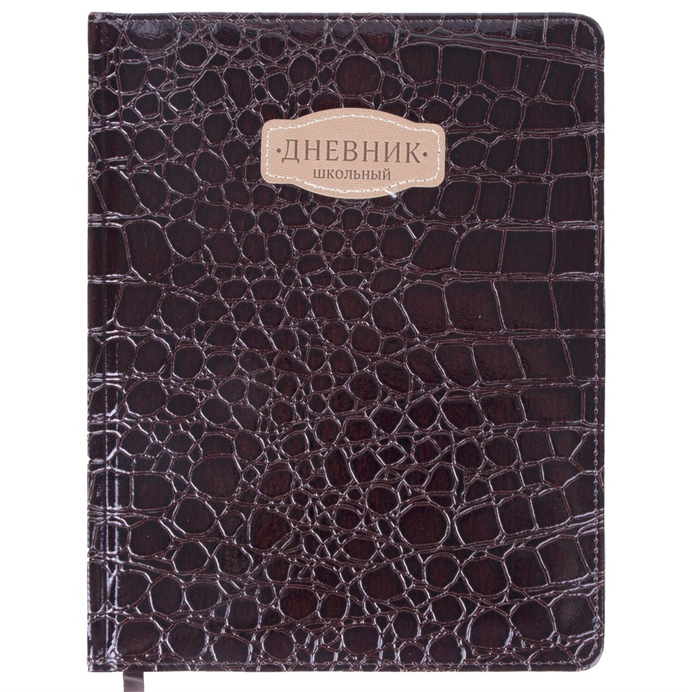 Дневник 1-11 класс 48 л., кожзам (твердая с поролоном), нашивка, BRAUBERG "CROCODILE", коричневый, 105482