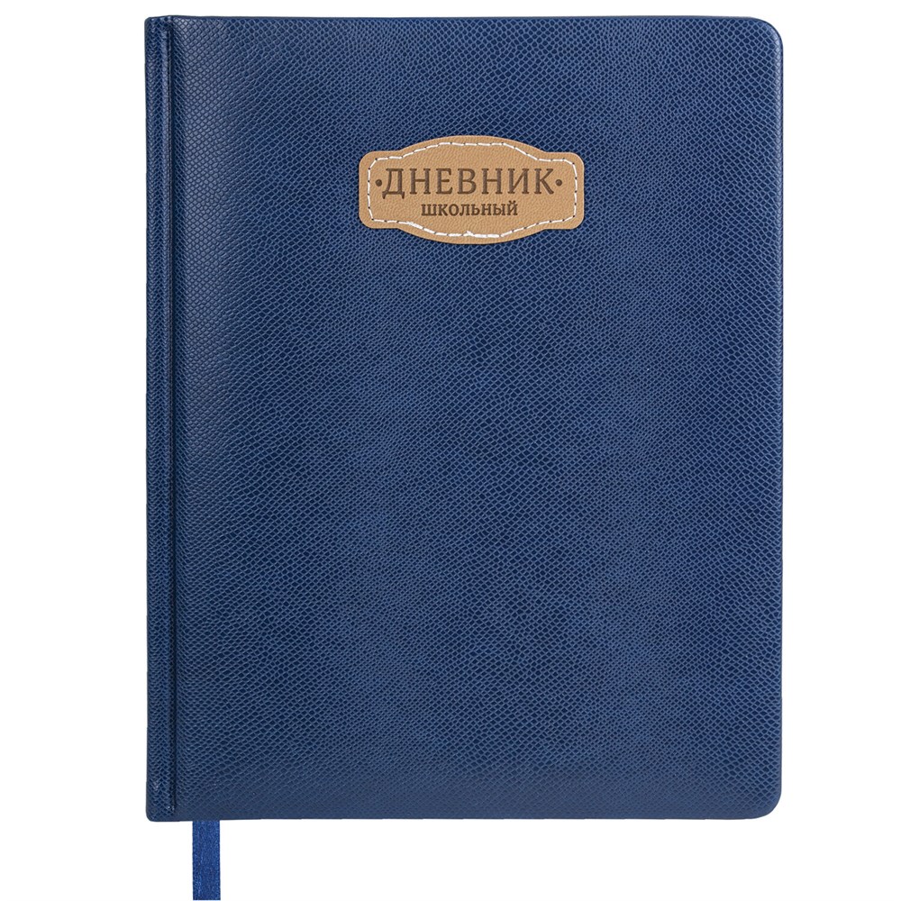 Дневник 1-11 класс 48 л., кожзам (твердая с поролоном), нашивка, BRAUBERG IGUANA, синий, 107226