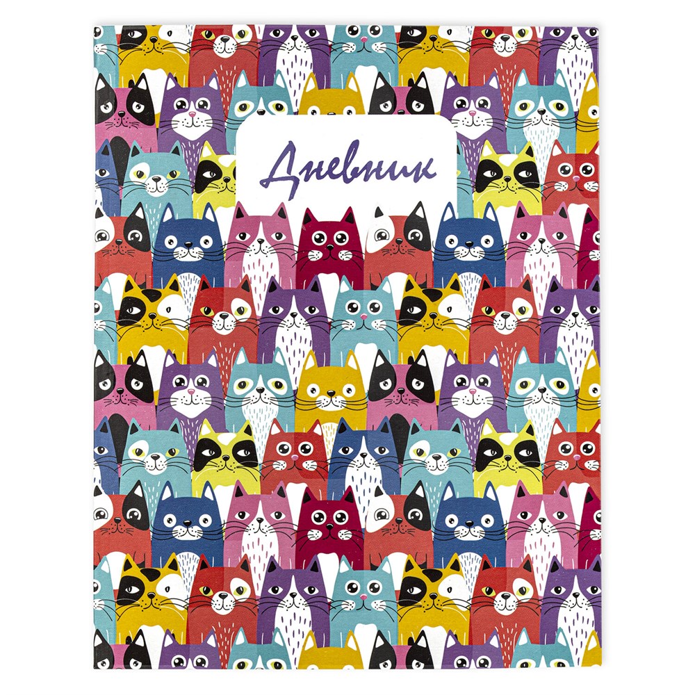 Дневник 1-4 класс 48 л., гибкая обложка, ЮНЛАНДИЯ, выборочный лак, с подсказом, "Котики", 106588