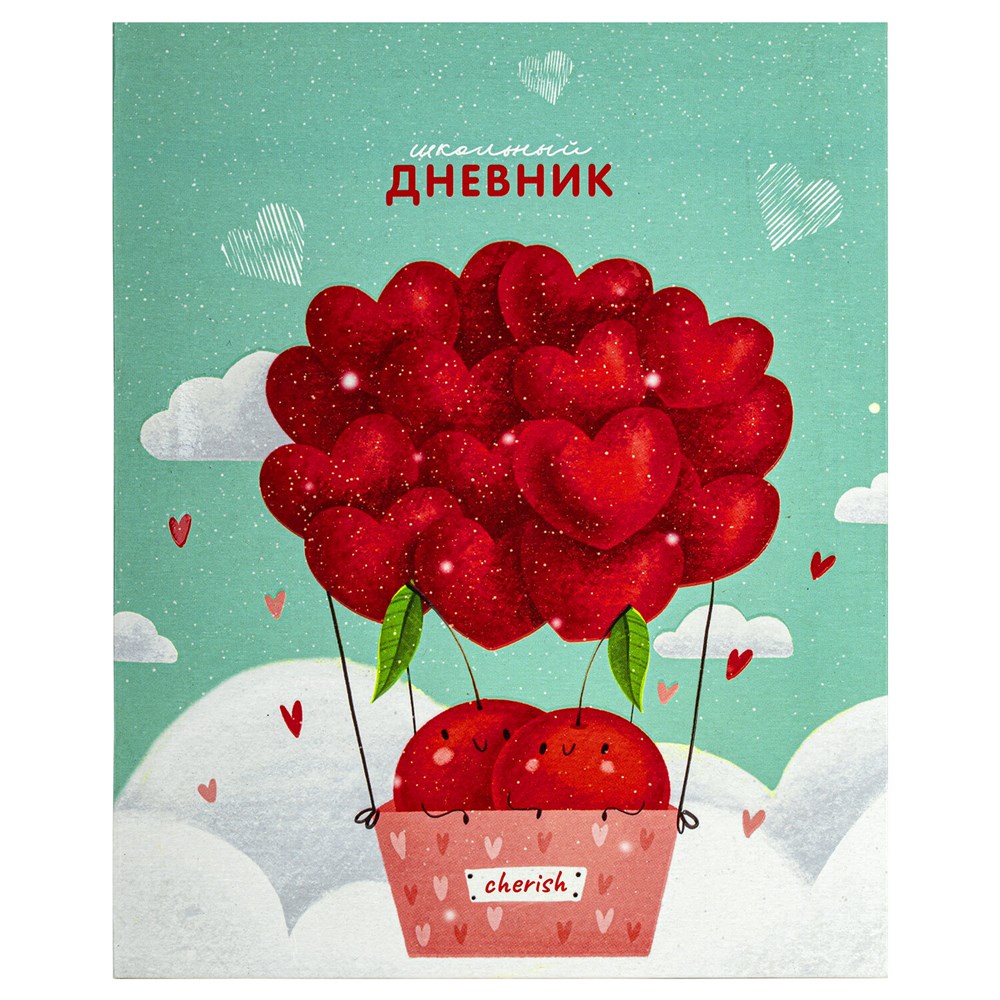 Дневник 1-4 класс 48 л., гибкая обложка, ЮНЛАНДИЯ, выборочный лак, с подсказом, "Вишенки", 106589