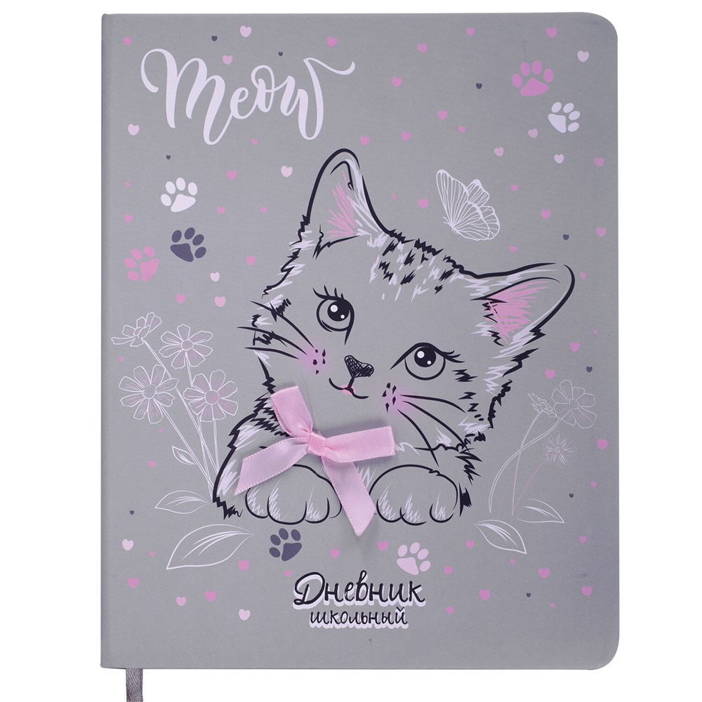 Дневник 1-4 класс 48 л., кожзам (твердая), 3D-элемент, ЮНЛАНДИЯ, "Котик", 106208