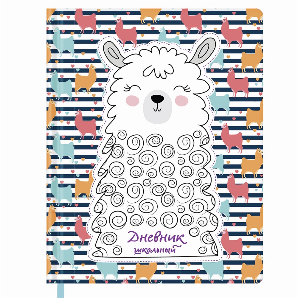Дневник 1-4 класс 48 л., кожзам (твердая с поролоном), печать, аппликация, ЮНЛАНДИЯ, "ЛАМА", 105478