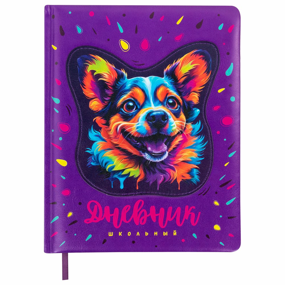 Дневник 1-4 класс 48 л., кожзам (твердая с поролоном), печать, аппликация, ЮНЛАНДИЯ, "Собачка", 106937