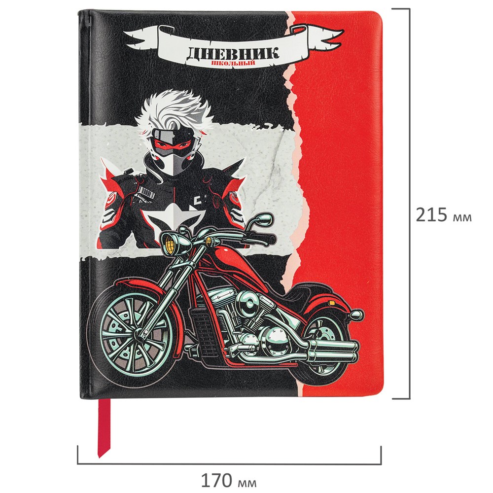 Дневник 1-4 класс 48 л., кожзам (твердая с поролоном), печать, наклейки, ЮНЛАНДИЯ, "Байк", 106945