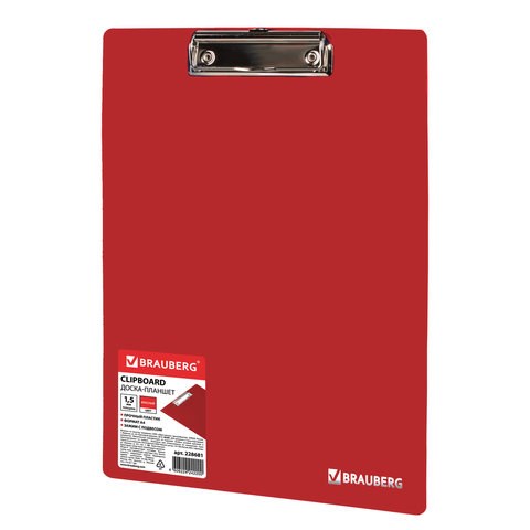 Доска-планшет BRAUBERG "Contract" с прижимом А4 (313х225 мм), пластик, 1,5 мм, КРАСНАЯ, 228681