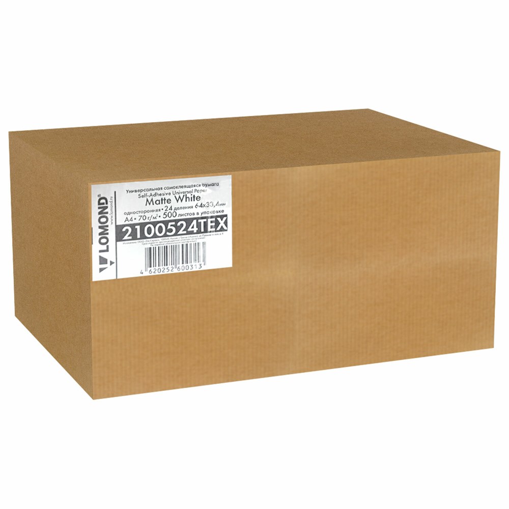 Этикетка самоклеящаяся 64х33,4 мм, 24 этикетки, белая, 70 г/м2, 500 л., LOMOND, 2100524ТЕХ