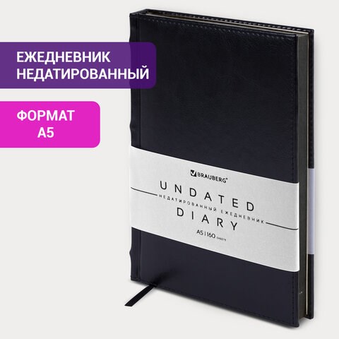 Ежедневник недатированный А5 138х213 мм BRAUBERG "FLAME", под кожу, 160 л., черный, черный срез, 113429