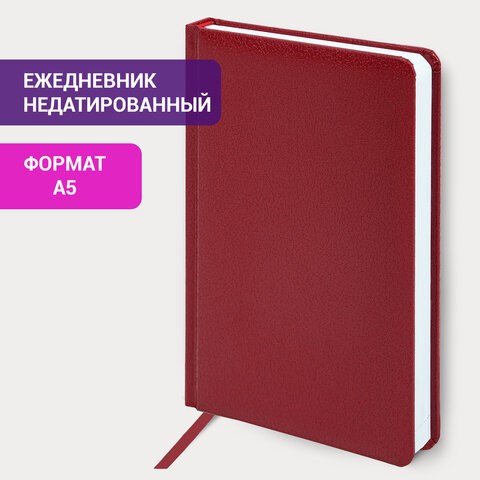 Ежедневник недатированный А5 138x213 мм BRAUBERG "Profile" балакрон, 136 л., красный, 123427