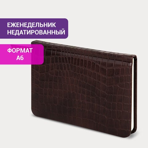 Еженедельник недатированный МАЛЫЙ ФОРМАТ А6 (95х155 мм) BRAUBERG "Alligator", кожзам, 64 л., коричневый, 126183