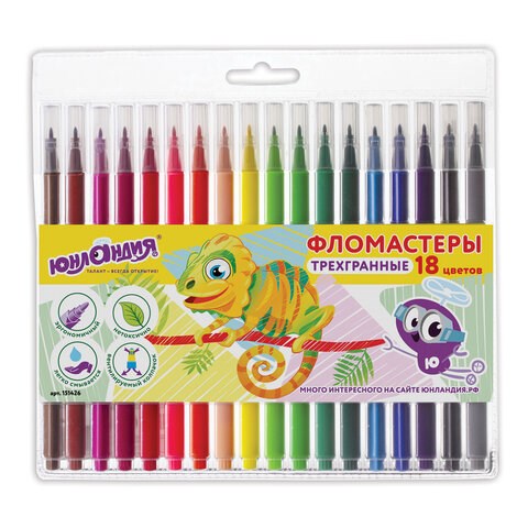 Фломастеры ЮНЛАНДИЯ 18 цветов, "ЗООПАРК", трехгранные, вентилируемый колпачок, 151426