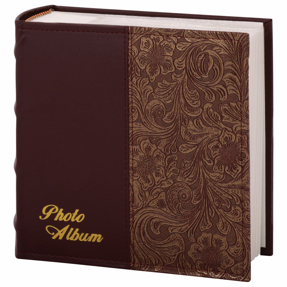 Фотоальбом BRAUBERG на 300 фотографий 10х15 см, обложка под кожу, бумажные страницы, бокс, бордо+бронза, 390681