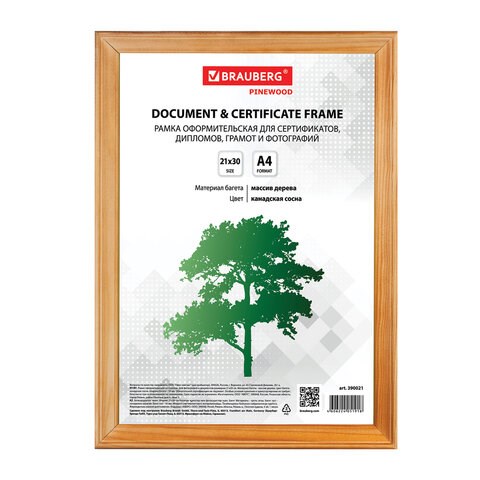 Фоторамка BRAUBERG 21*30см дерево "канадская сосна", (для дипломов, серт, грамот и т.д.), 390021