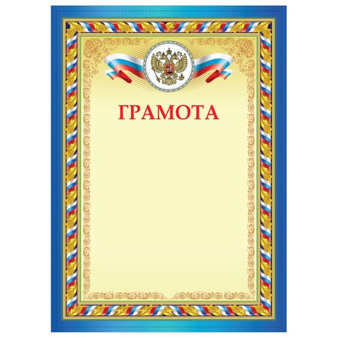 Грамота А4, плотная мелованная бумага 200 г/м2, для лазерных принтеров, сине-желтая, STAFF, 128892