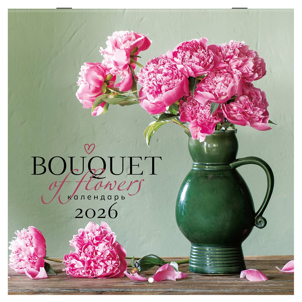 Календарь настенный перекидной 2026 г., BRAUBERG, 12 листов, 28,5х28,5 см, "Цветы", 116930