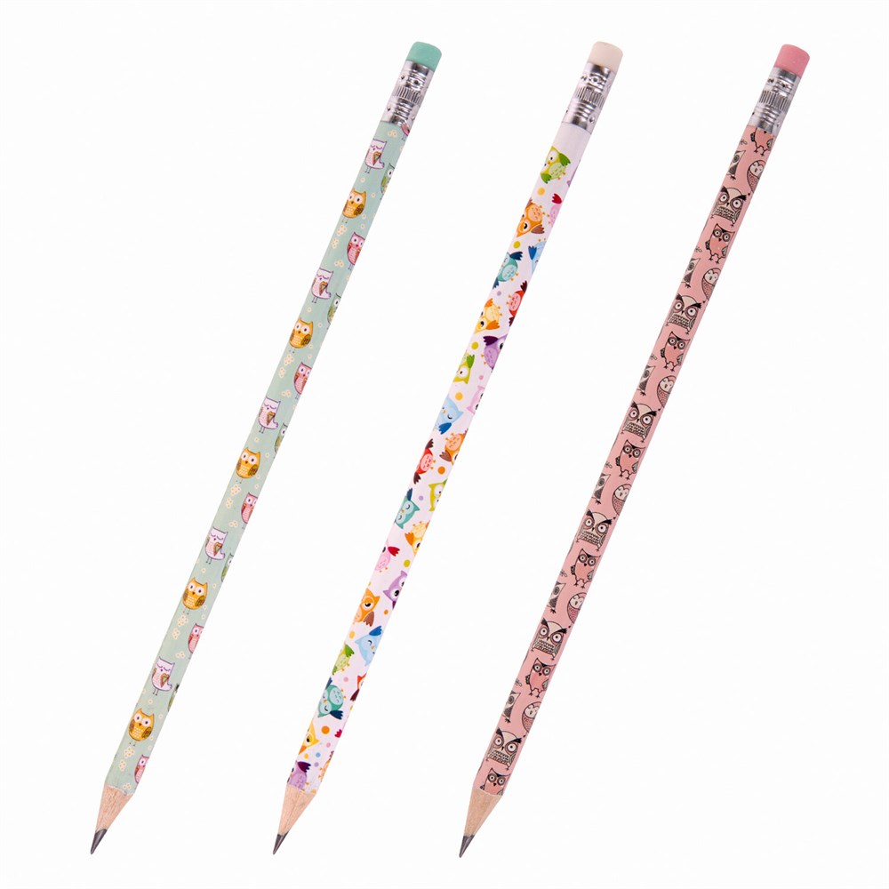 Карандаш чернографитный ЮНЛАНДИЯ "СОВУШКА", 1 шт., HB, с ластиком, корпус ассорти, 181772