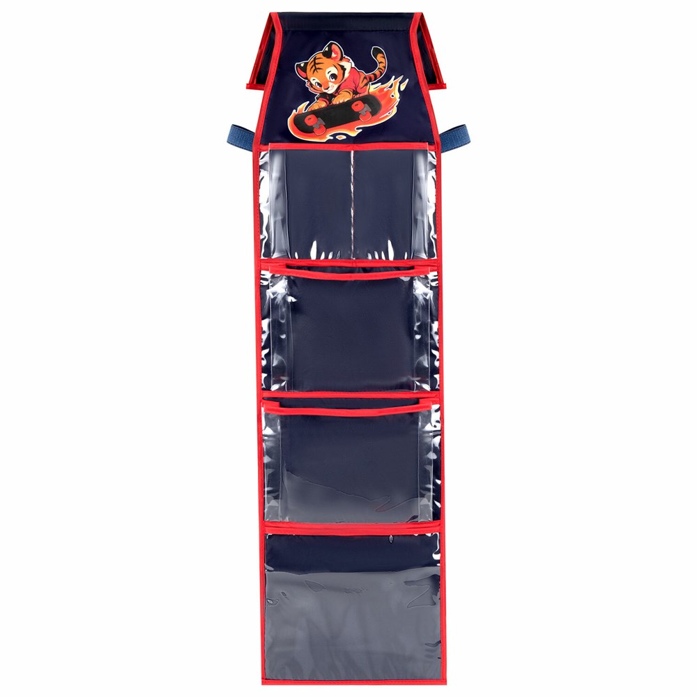 Кармашки-органайзер в шкафчик для детского сада BRAUBERG KIDS, крепление на липучке, наклейки-подсказки, 24х88 см, "Tiger", 273285