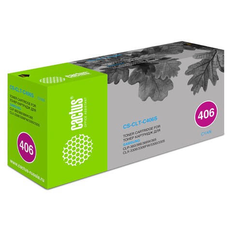 Картридж лазерный CACTUS (CS-CLT-C406S) для SAMSUNG CLP-365/365W, голубой, ресурс 1000 стр.
