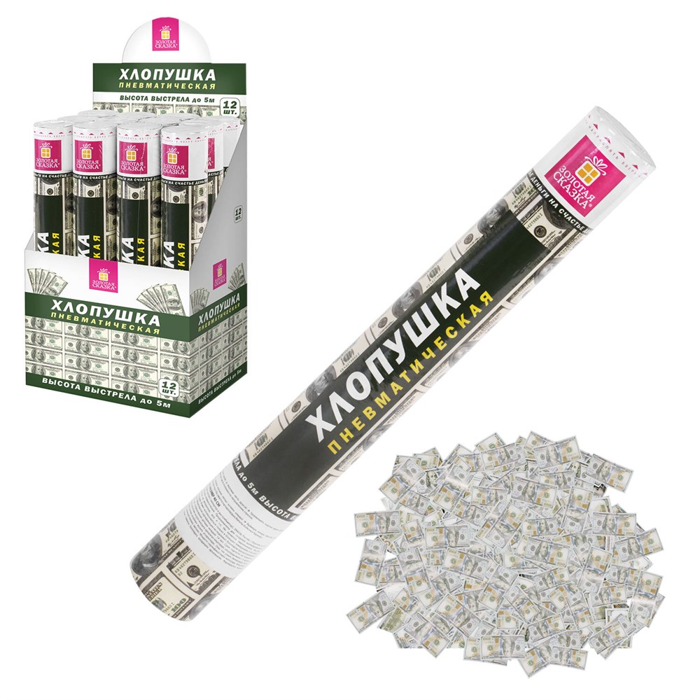 Хлопушка пневматическая 40 см "DOLLARS", бумага, наполнитель "доллары", ЗОЛОТАЯ СКАЗКА, 592463