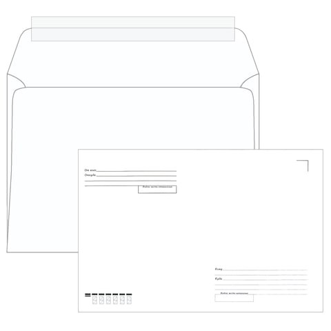 Конверты С4 (229х324 мм), отрывная лента, "Куда-Кому", 100 г/м2, КОМПЛЕКТ 500 шт.