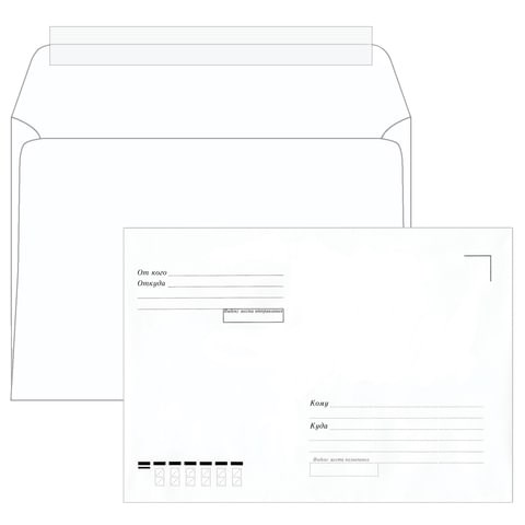 Конверты С5 (162х229 мм), отрывная лента, "Куда-Кому", 80 г/м2, КОМПЛЕКТ 1000 шт.