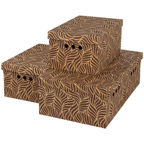 Короб для хранения из плотного микрогофрокартона 330х250х185 мм, КОМПЛЕКТ 4 шт., BRAUBERG HOME "Узор", 271816