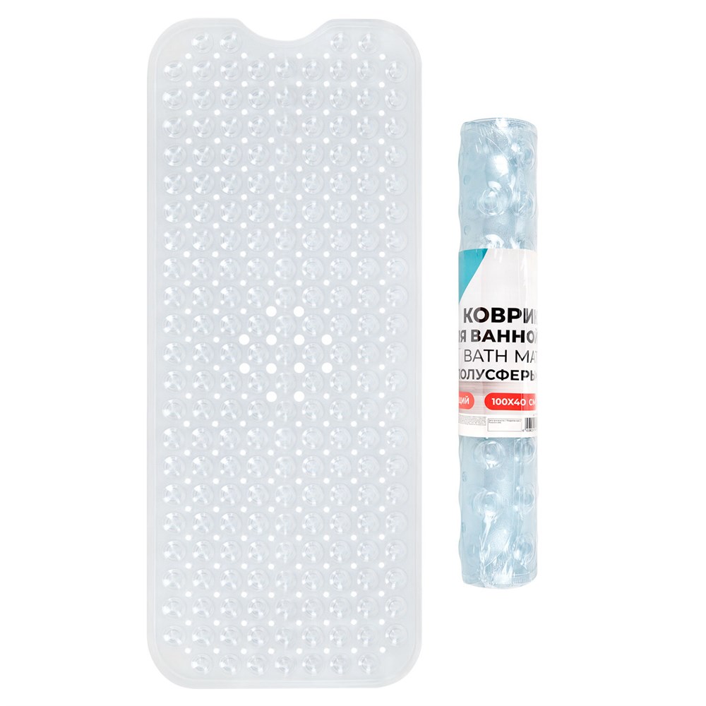 Коврик для ванны противоскользящий 100х40 см, "Полусферы", прозрачный, ПВХ, присоски, PRIMILA (ПРИМИЛА), 700376