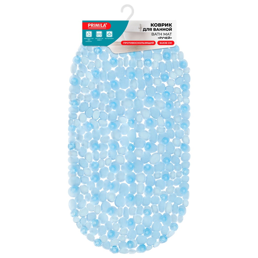 Коврик для ванны противоскользящий 64х36 см "Ручей", овальный, голубой, ПВХ, присоски, PRIMILA (ПРИМИЛА), 700390