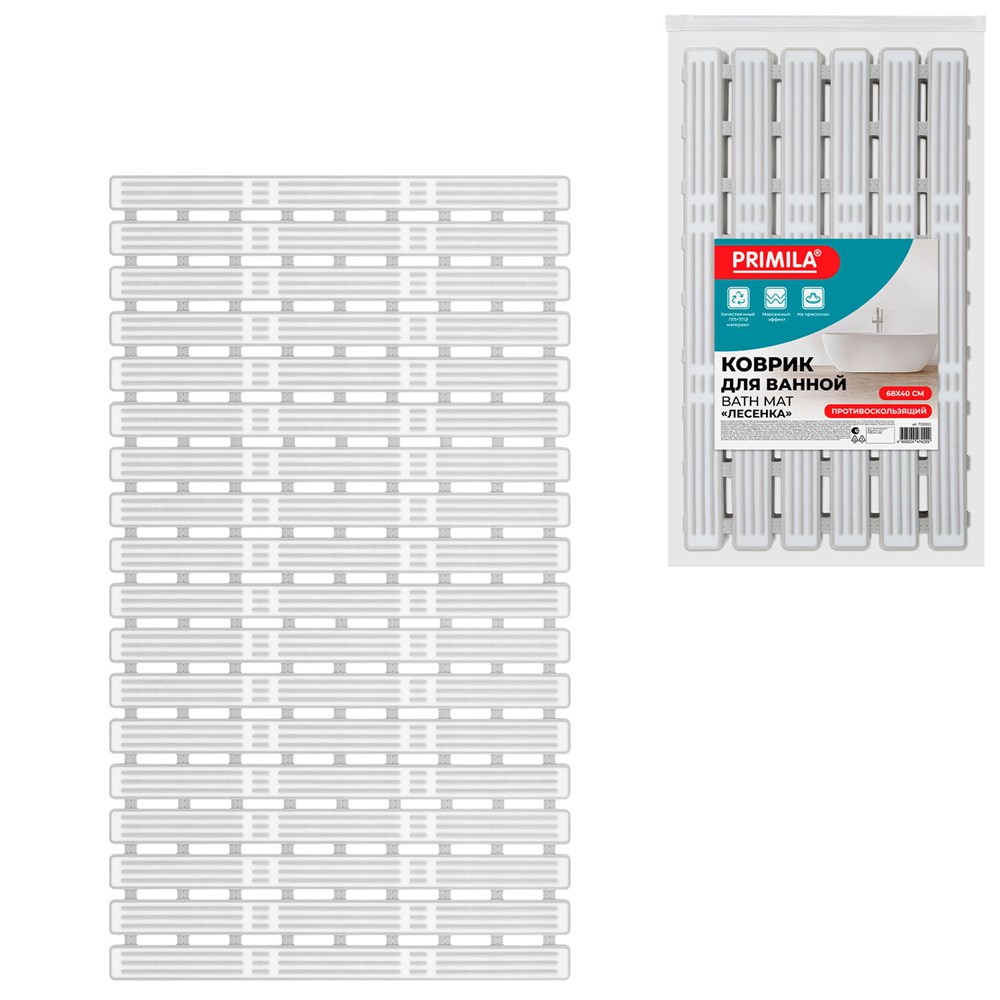 Коврик для ванны противоскользящий износостойкий 68х40 см, "Лесенка", ПП + ТПЭ, присоски, PRIMILA (ПРИМИЛА), 700385