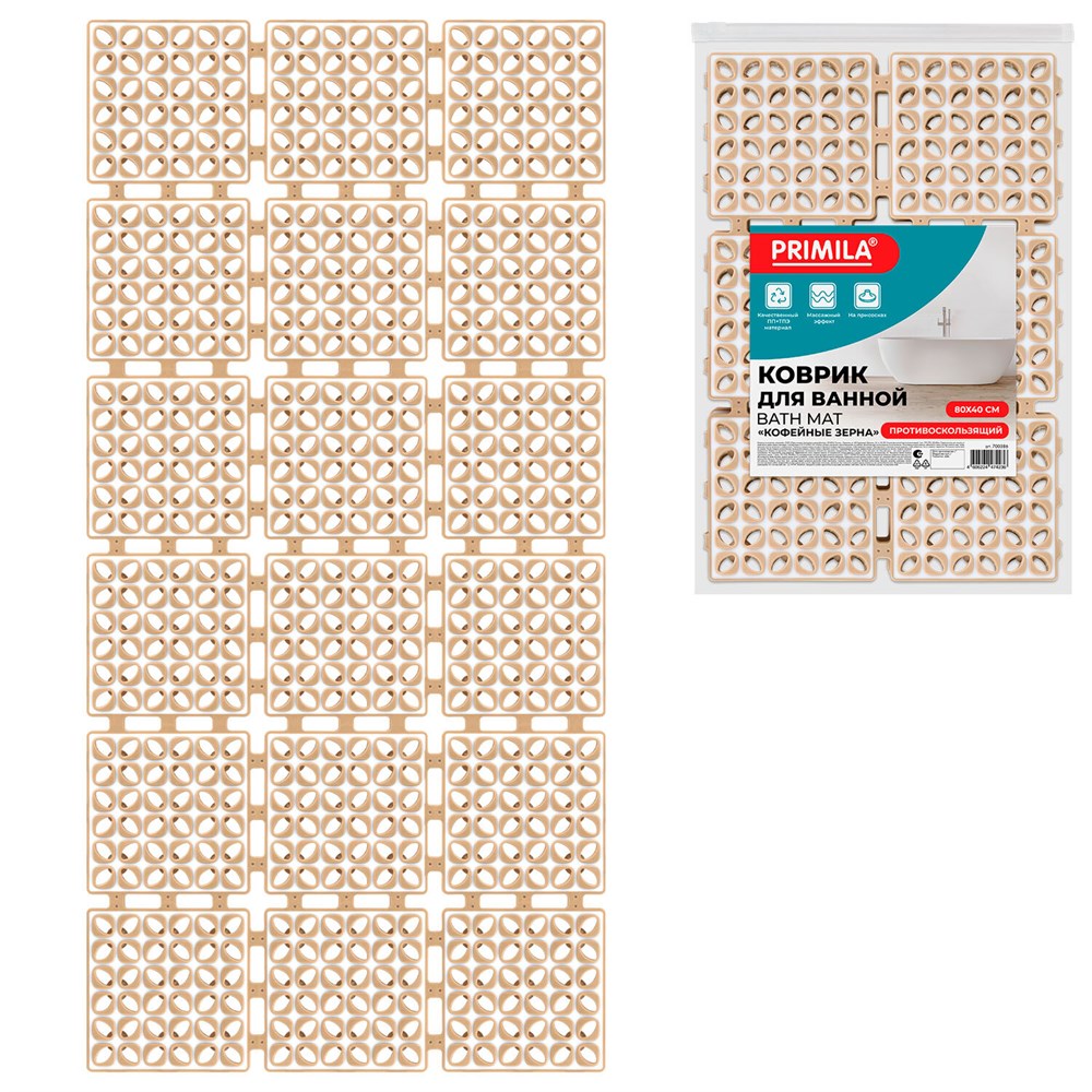 Коврик для ванны противоскользящий износостойкий 80х40 см, "Кофейные зерна", ПП + ТПЭ, PRIMILA (ПРИМИЛА), 700386